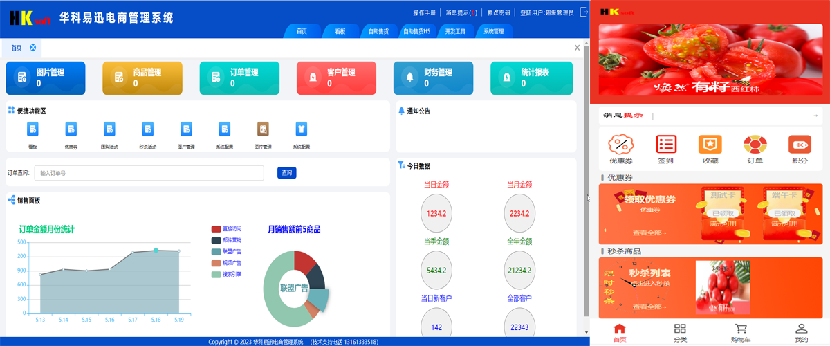 华科易迅电商管理系统采用SpringBoot+Vue+UniApp技术实现多客户类型部署,目前支持微信小程序、微信公众号。