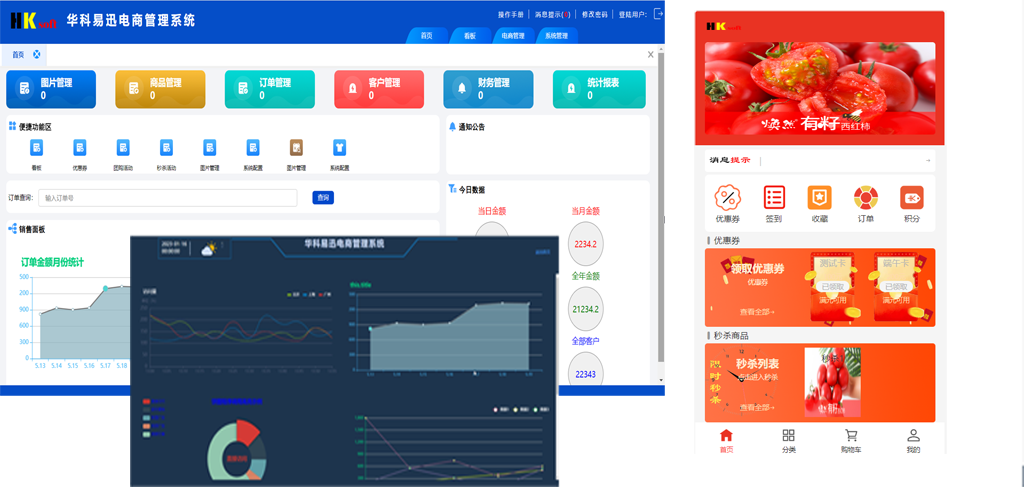 华科易迅电商管理系统采用SpringBoot+Vue+UniApp技术实现多客户类型部署,目前支持微信小程序、微信公众号。