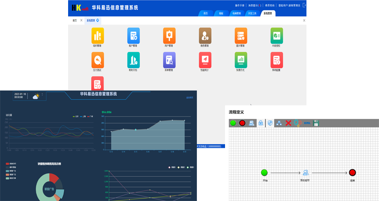 华科易迅信息管理系统采用SpringBoot+Vue实现前后端分离技术,提供包含基础功能快速开发平台,丰富组件技术可提高开发效率。